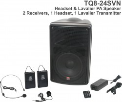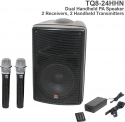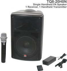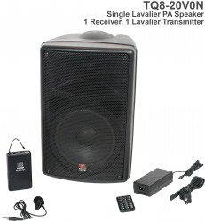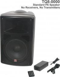 TQ8-0000 Base model includes the TQ8 PA Speaker, MP3 Remote, and Power Supply. |